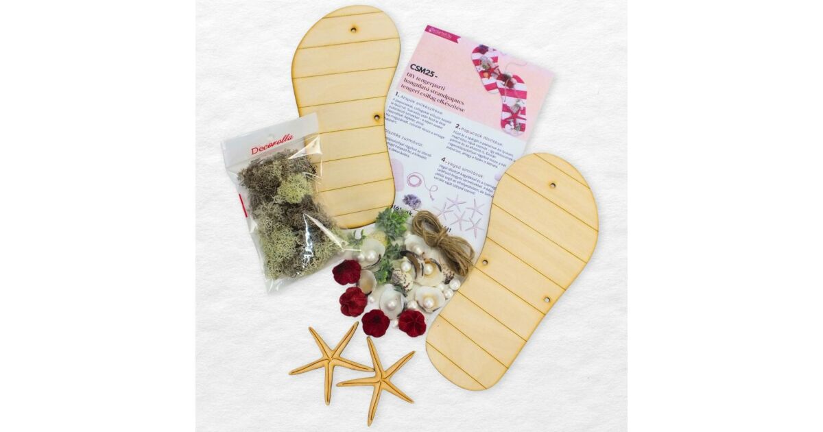 Készítsd el saját tengerparti hangulatú dekorációdat ezzel a kreatív szettel! 🏖️ Ez a szett mindent tartalmaz, amire szükséged van egy egyedi, kézzel készített papucs dísz elkészítéséhez. A kész dísz tökéletes nyári dekoráció a lakásba, vagy egyedi ajándék lehet szeretteidnek.