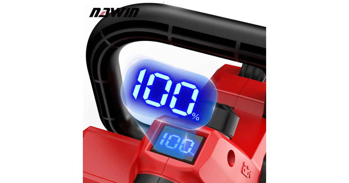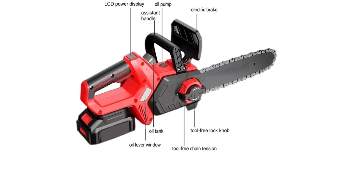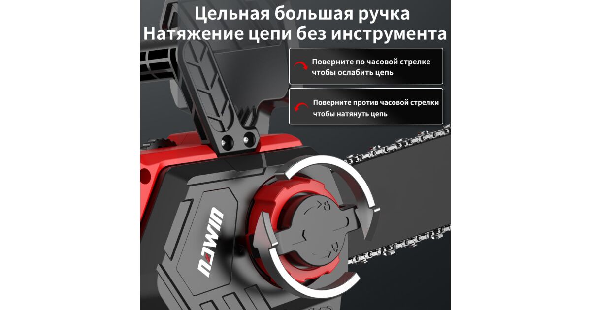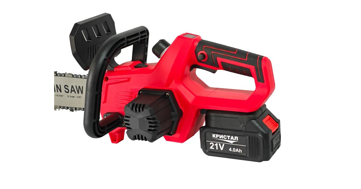 Láncfűrész / mini fűrész akkumulátorral DDT-CRISTAL, 21V, 4A, Akkumulátor százalékjelző, automatikus kenőrendszer, Penge + Lánc 12" szállítótáska, piros-fekete leírása