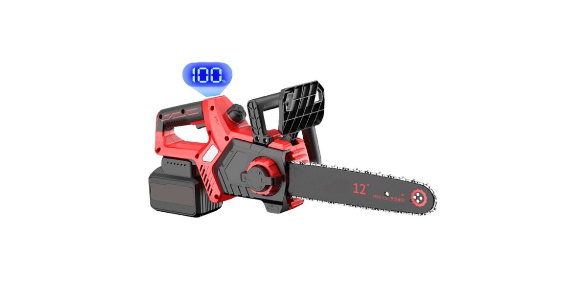 Láncfűrész / mini fűrész akkumulátorral DDT-CRISTAL, 21V, 4A, Akkumulátor százalékjelző, automatikus kenőrendszer, Penge + Lánc 12" szállítótáska, piros-fekete