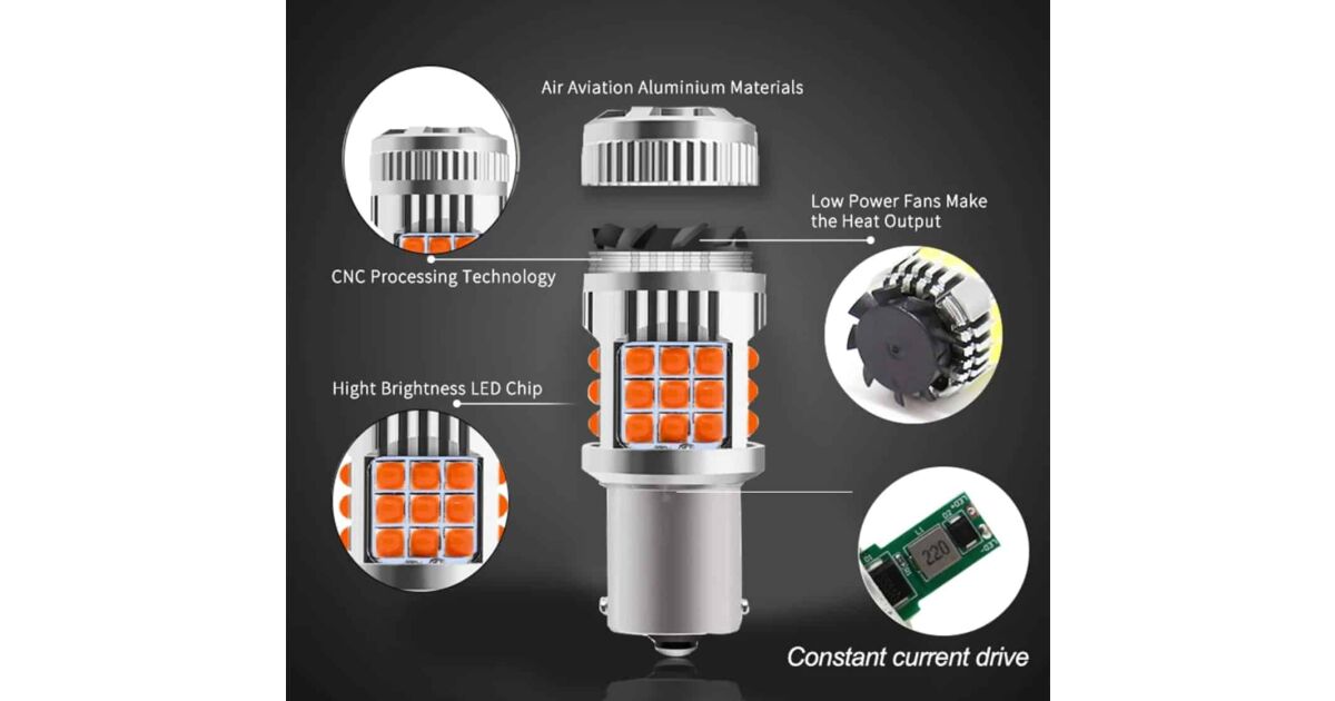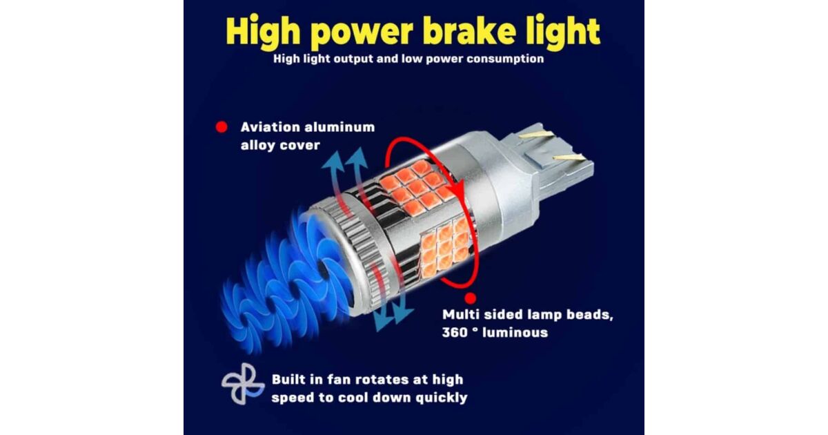 LED izzó T20 / W21/5W / 7443 helyzet és fék 2 izzószálas, 30W, 2800LM, piros szín, 36 SMD 3030, integrált ventilátor, integrált Canbus, nincs kiégett izzó hiba, Stop 12V AutoREY® Premiumhoz