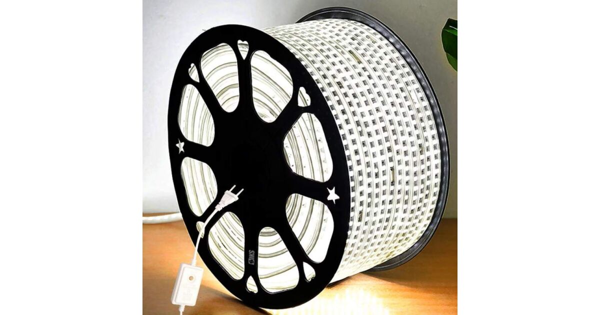 SIKS kültéri LED szalag karácsonyi telepítéshez, vízálló, 100 méteres tekercs, 48 LED/méter, rugalmas védelemmel, SMD2835 LED, 220V tápegység, IP65, összekapcsolható, hideg fehér vélemények