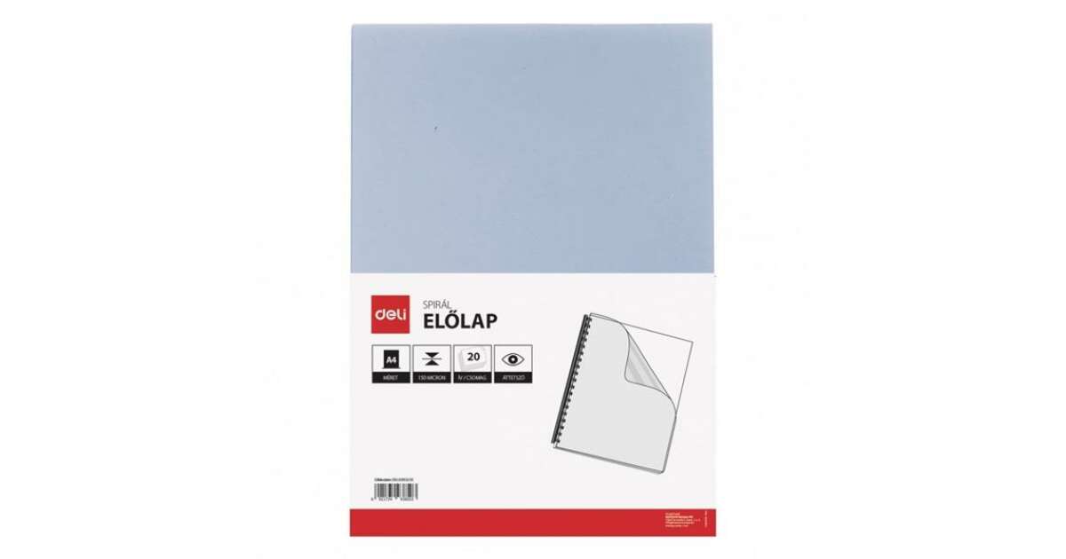 Ez a 20 db-os DELI Start spirál előlap ideális választás A4-es dokumentumaid védelmére. A 150 mikron vastagságú, kristálytiszta fólia kiváló védelmet nyújt a sérülések, kosz és nedvesség ellen. Használd füzetekhez, jegyzetekhez, vagy bármilyen fontos dokumentumhoz, hogy megőrizd azok állapotát.