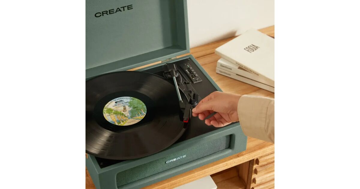 Retro hangszedő Bluetooth-szal, CREATE-tel, lemezjátszóval, sage