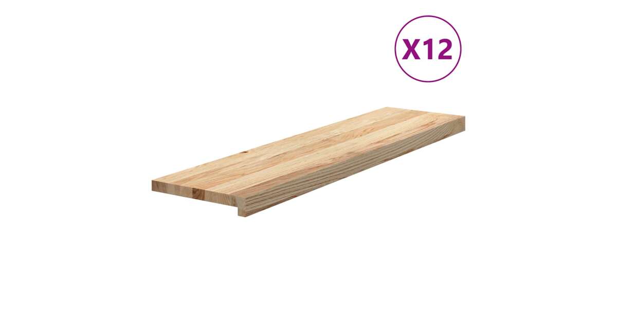 vidaXL 12 db tömör tölgyfa lépcsőfokok kezeletlen 100x30x2 cm