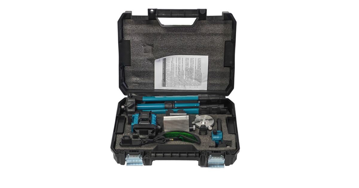 Ezt a terméket így is ismerheted: Professzionális DDT-KRISTAL lézeres szintező 16 vonal 4D, zöld, 2 db Li-ion akkumulátorral, távirányítóval, állvánnyal, tartókkal és hordtáskával