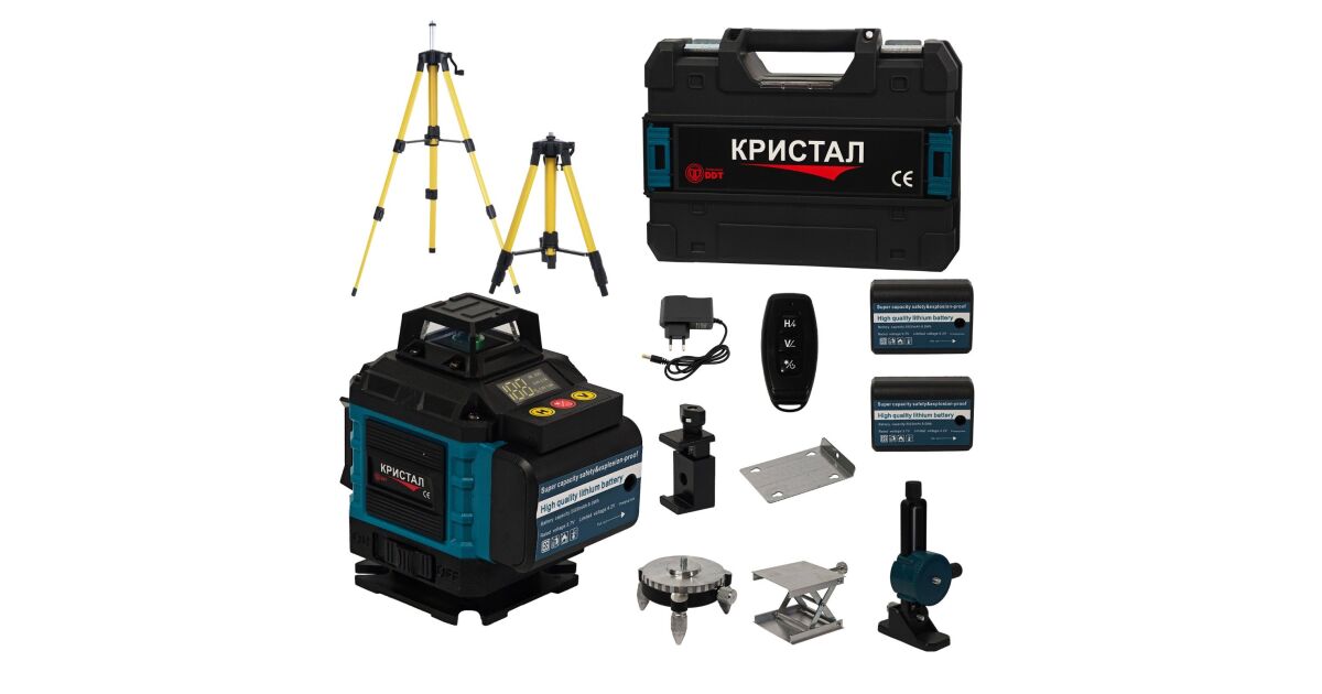 Professzionális DDT-KRISTAL lézeres szintező 16 vonal 4D, zöld, 2 db Li-ion akkumulátorral, távirányítóval, állvánnyal, tartókkal és hordtáskával leírása