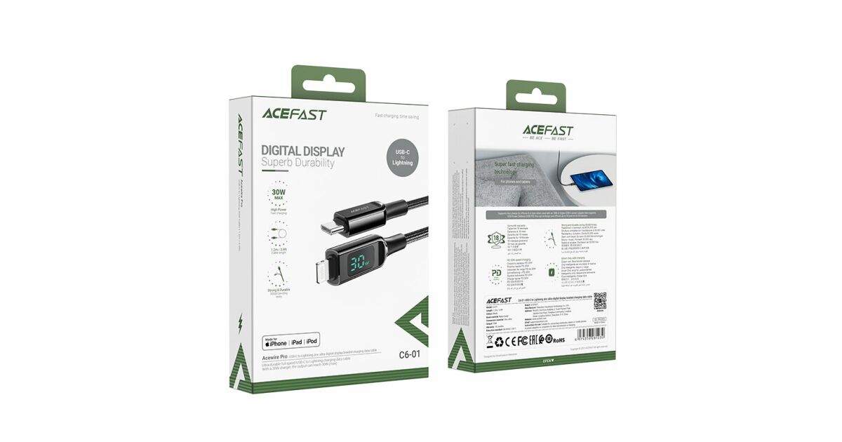 Acefast C6-01 adat és töltőkábel, MFI, USB-C / Lightning, 30W, 1,2m, Fekete leírása