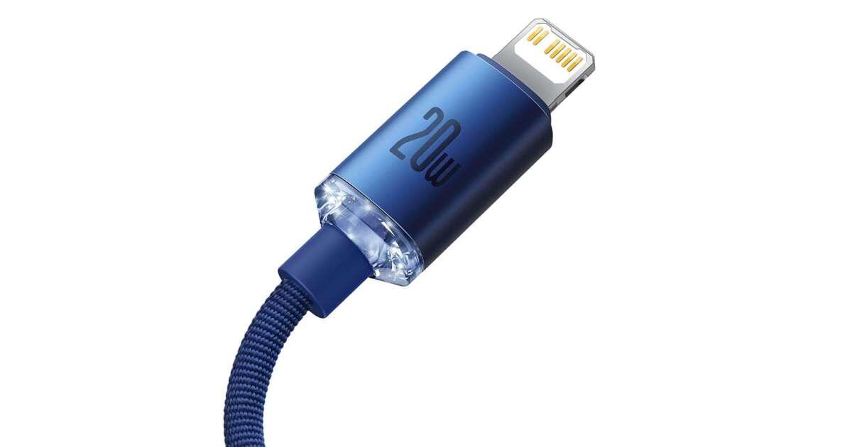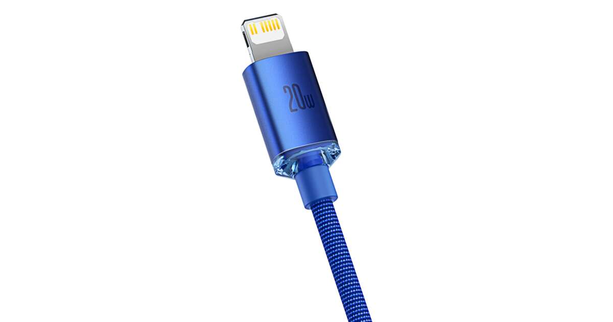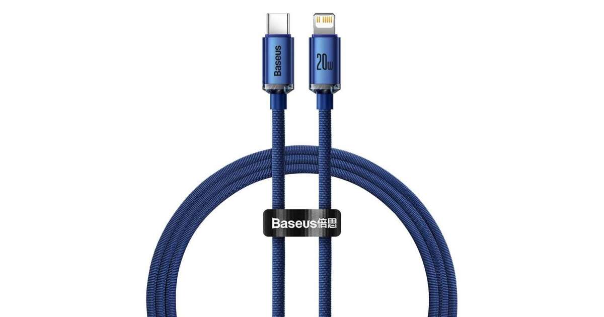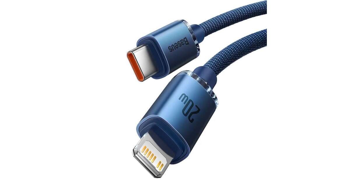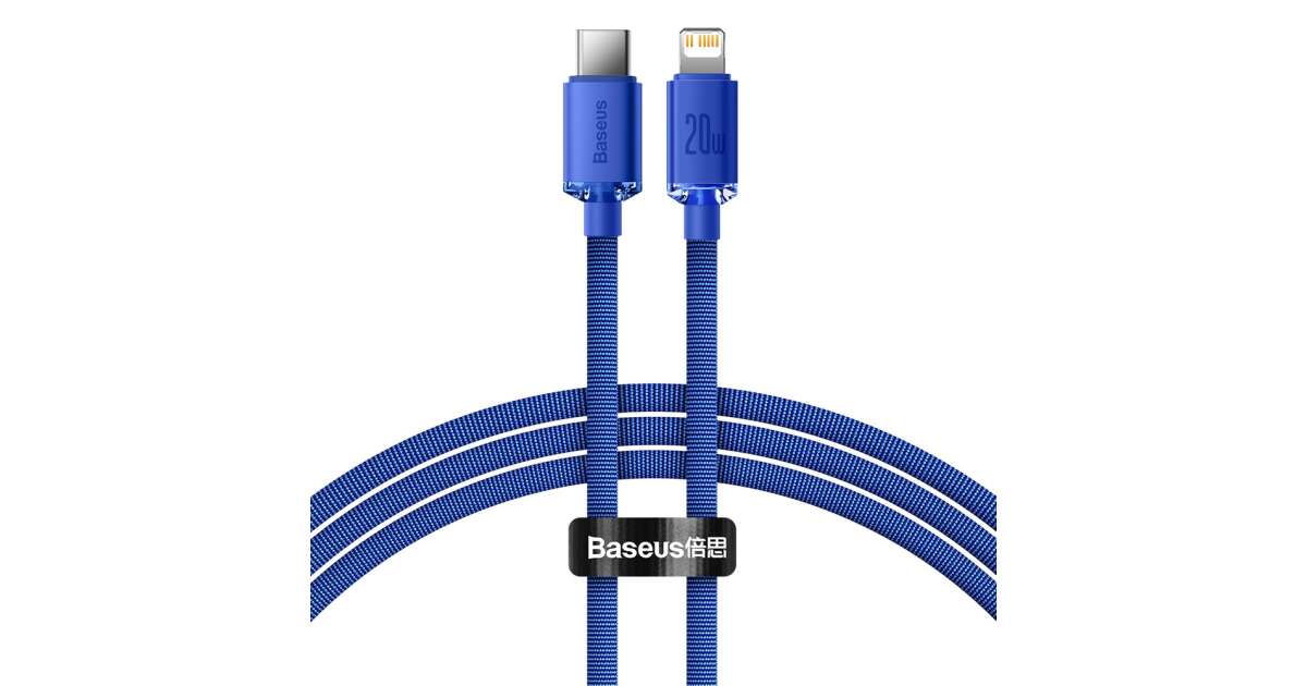 Ezt a terméket így is ismerheted: Baseus Crystal Shine Series adat és töltőkábel, Power Delivery, USB-C / Lightning, 20W, 1,2m, Kék
