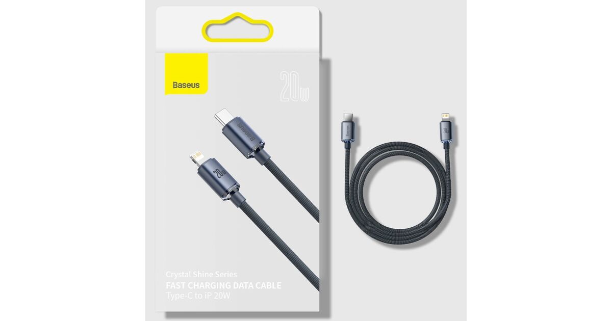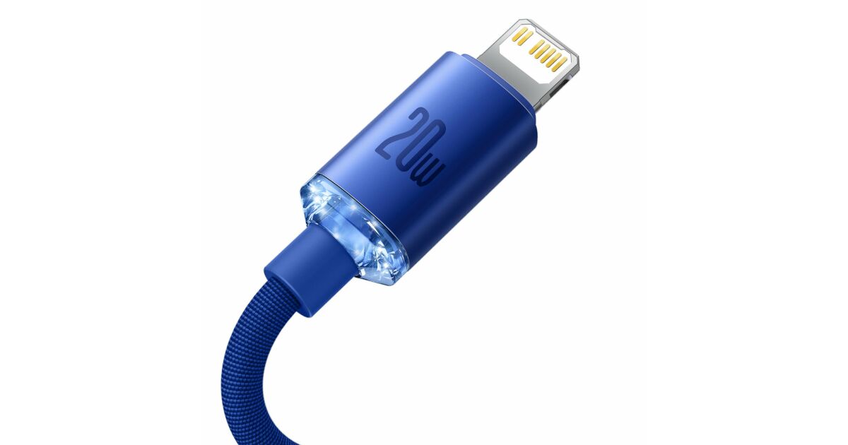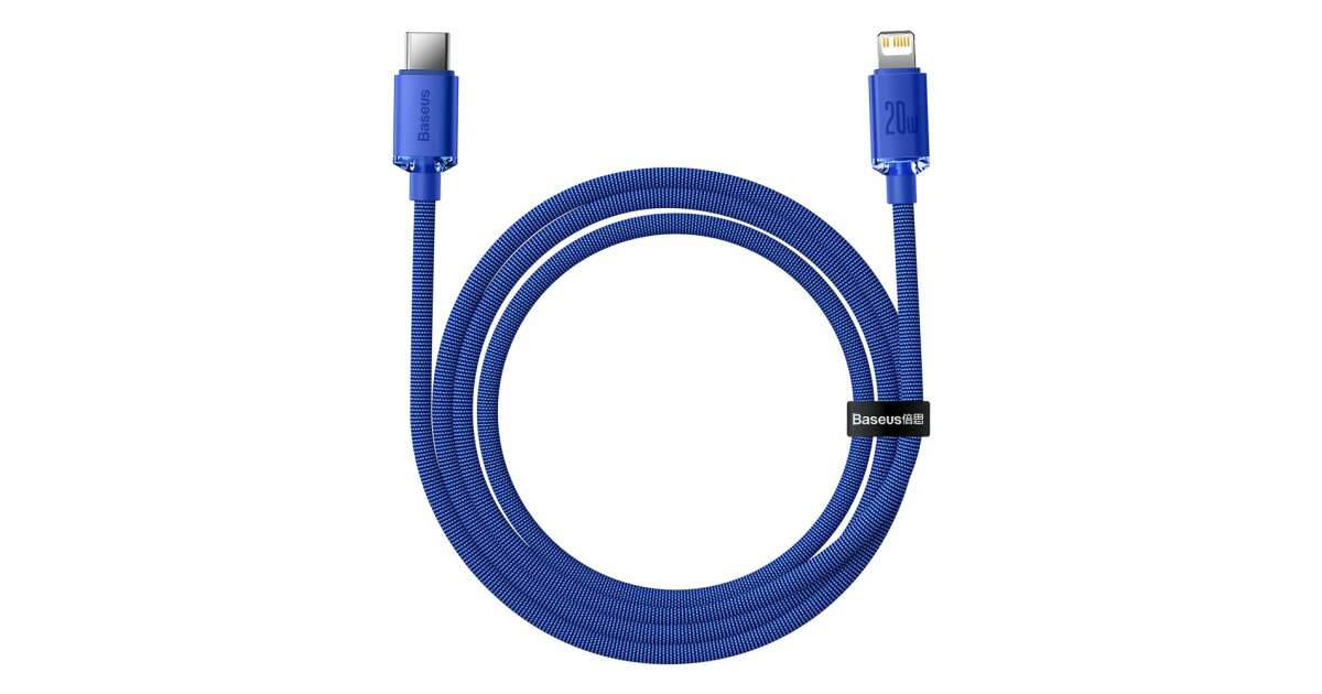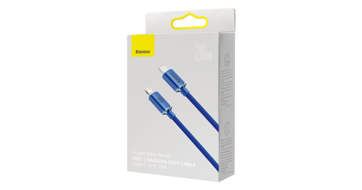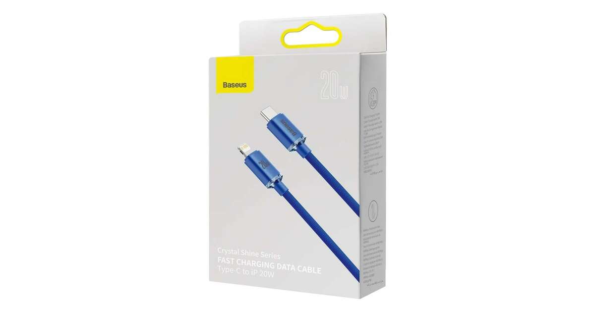 Ezt a terméket így is ismerheted: Baseus Crystal Shine Series adat és töltőkábel, Power Delivery, USB-C / Lightning, 20W, 1,2m, Kék