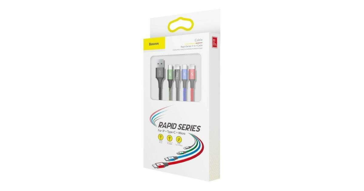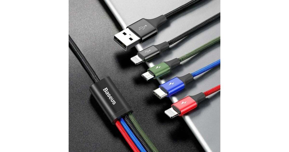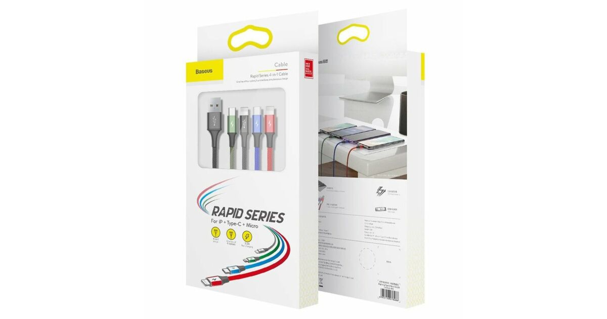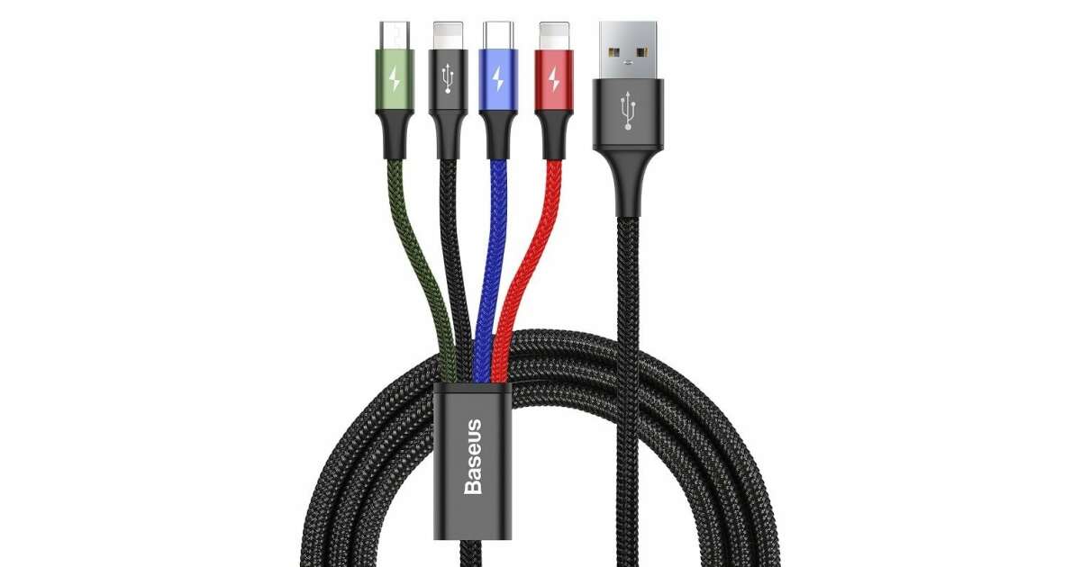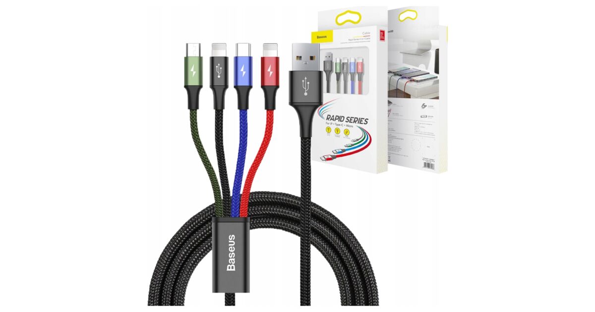 Ez a Baseus 4 az 1-ben kábel a tökéletes megoldás, ha több eszközt is szeretnél egyszerre tölteni. USB-C, két Lightning és egy Micro USB csatlakozóval rendelkezik, így kompatibilis a legtöbb okostelefonnal és táblagéppel.