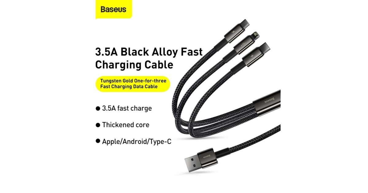 Baseus Tungsten Gold 3 az 1-ben USB-kábel, USB-mikro-USB / USB-C / Lightning, 3,5 A, 1,5 m (fekete) leírása