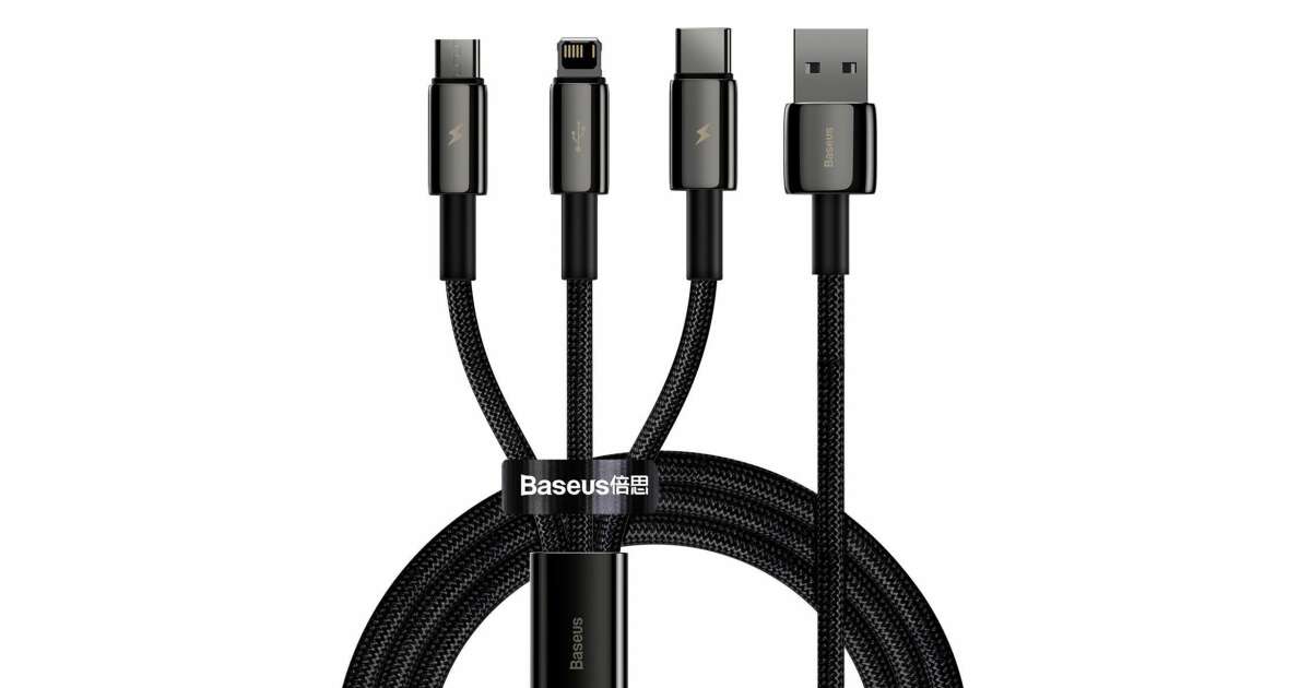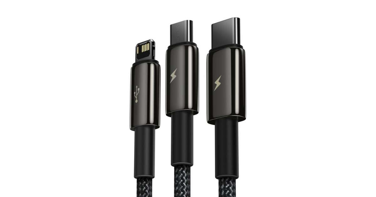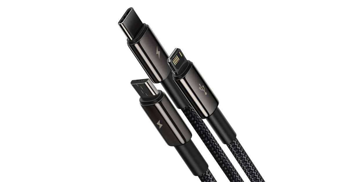 Ez a Baseus Tungsten Gold 3 az 1-ben kábel forradalmasítja a töltés élményét! Egyetlen kábellel tölthetsz egyszerre iPhone-t (Lightning), Android telefont (USB-C vagy micro-USB) és más eszközöket. Mondj búcsút a kábel-kavarodásnak és a több töltőhöz való keresgélésnek!