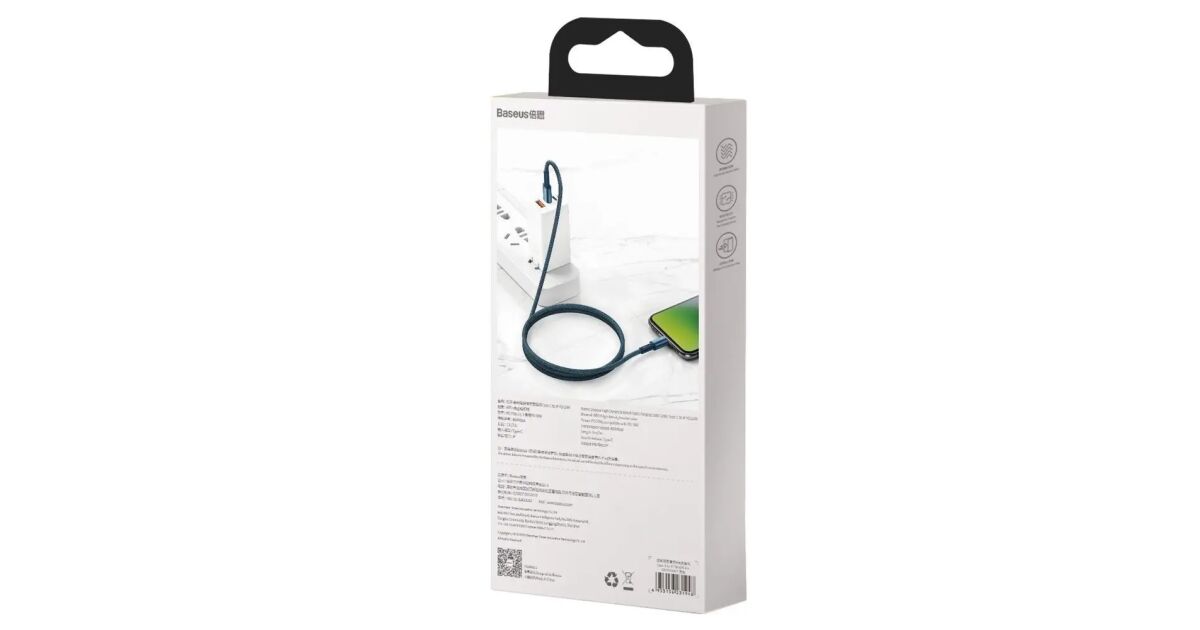 Baseus USB-C - Lightning kábel nagy sűrűségű fonott 20W 5A PD 2m (CATLGD-A03) #kék leírása