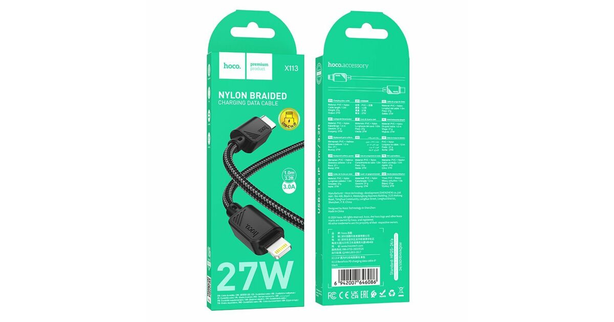 HOCO C típusú kábel Lightning PD 27W X113 1 m fekete HOCO kábel C típusú kábel Lightning PD 27W X113 1 m fekete leírása