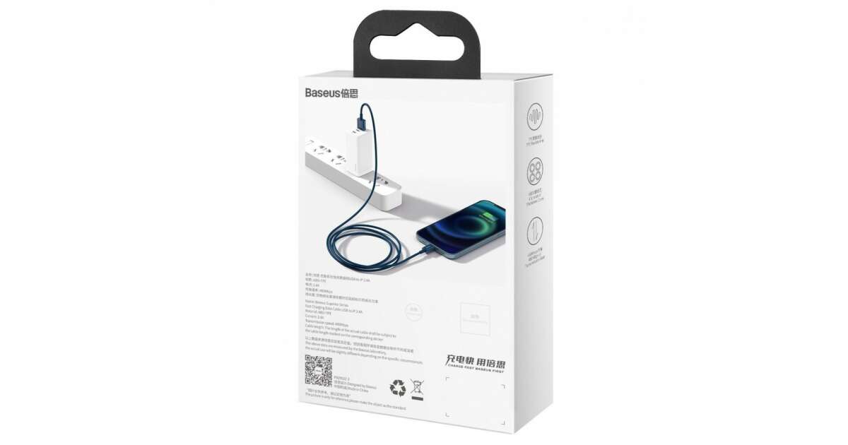 USB-kábel a Lightning Baseus Superior sorozathoz, 2,4A, 1 m (kék) leírása