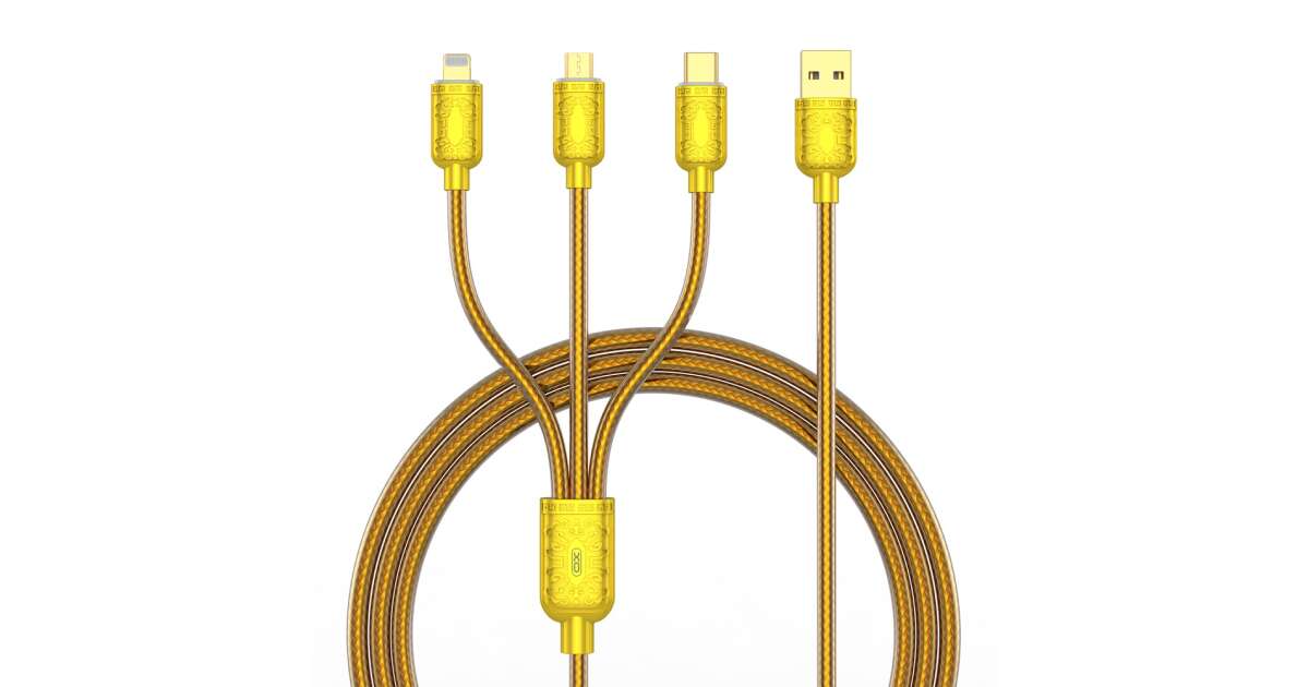 XO 3 az 1-ben Arany Szövet Töltési Kábel: Tökéletes Több Eszközhöz ⚡️