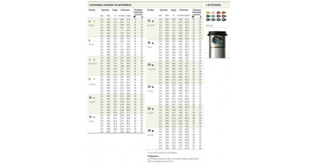 | Öntözési intenzitás | kb. 15 mm/óra |
