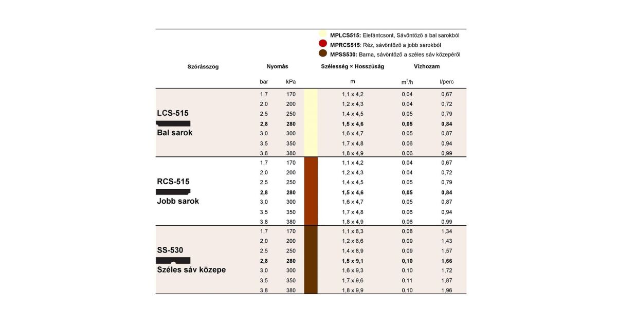 Hunter MP Rotator sávöntöző, sávszóró fúvóka MP-LCS-515 - rögzített, 1,5 x 4,6 m - bal sarokból - beige leírása