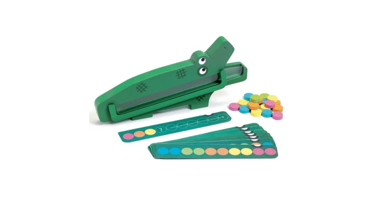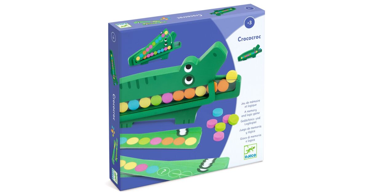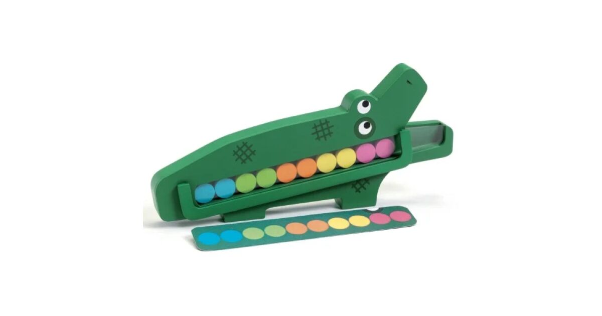 A Djeco Crococroc egy szórakoztató és fejlesztő fa játék, amely segít a gyerekeknek a színfelismerésben, a memóriában és a logikai gondolkodásban. A játék lényege, hogy a gyerekek a krokodil hasába helyezik a színes fa játékdarabokat a kártyákon látható minták alapján.