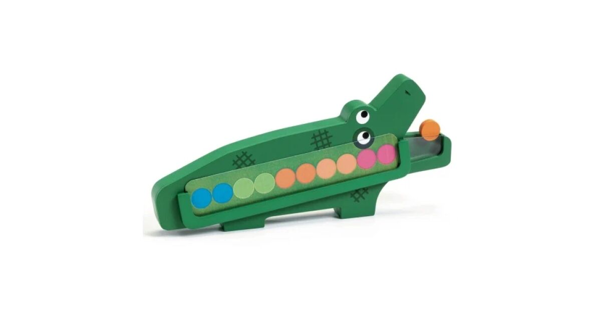 Ezt a terméket így is ismerheted: Djeco oktatójáték, Crococroc, fa, 21x10cm, 20 db színes játékdarab készlet