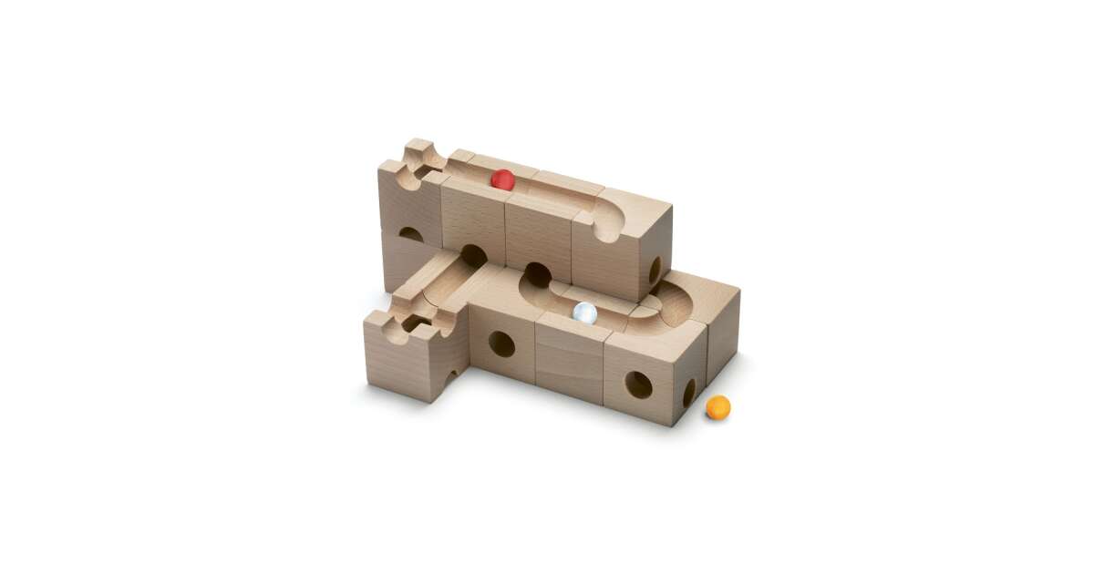 Ez a CUBORO Pro Extra fa játékkészlet tökéletes választás a kreatív és logikus gondolkodás fejlesztésére. A natúr fából készült elemekből izgalmas pályákat építhettek, melyek során a golyók kalandos útját követhetitek nyomon. A komplex áramkörök tervezése fejleszti a térbeli látásmódot, a problémamegoldó képességet és a finommotorikát.