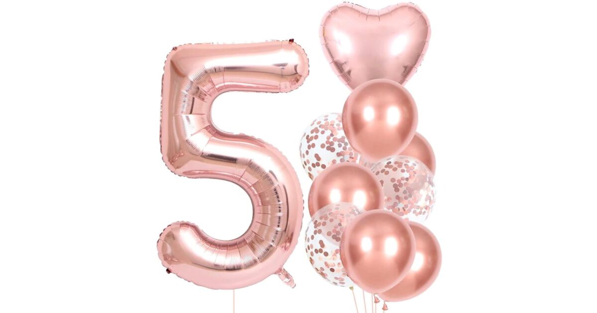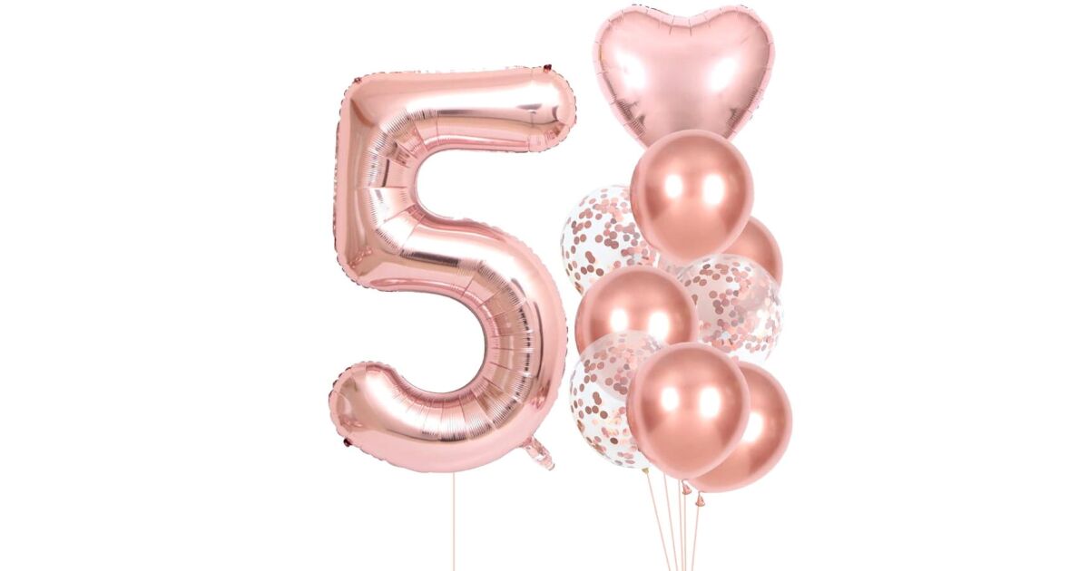 10 db rózsaszín 5. születésnapi lufi készlet, latex és fólia, szám magassága 81 cm vélemények