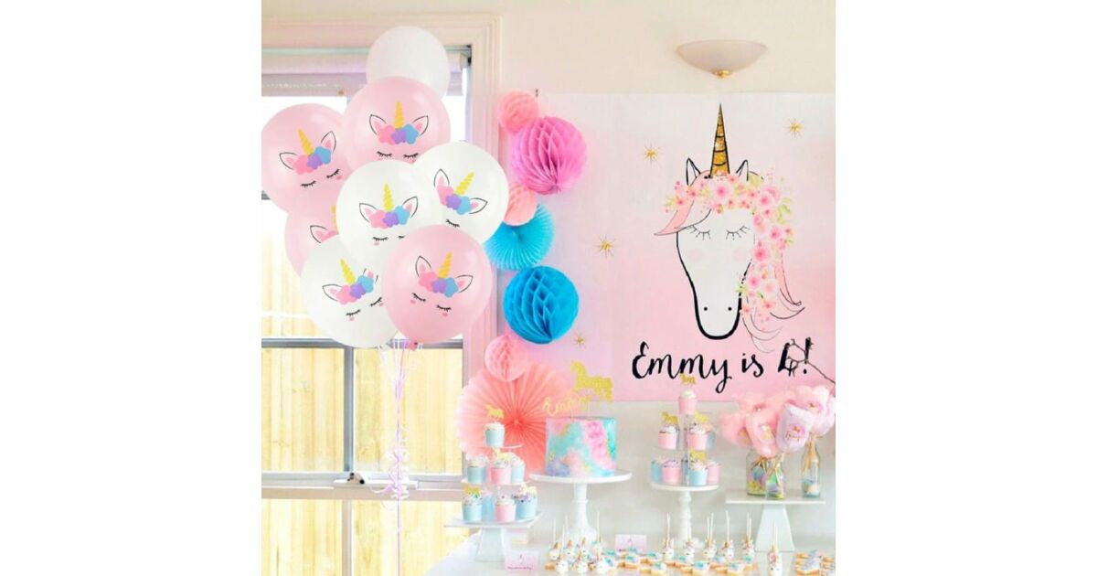 - 5 db rózsaszín lufi aranyos egyszarvú mintával