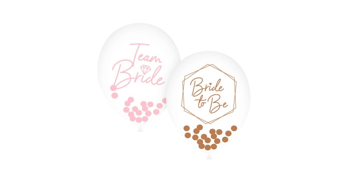 Ezt a terméket így is ismerheted: 6 db latex lufi készlet konfettivel, Team Bride modell, Amscan, 27,5 cm