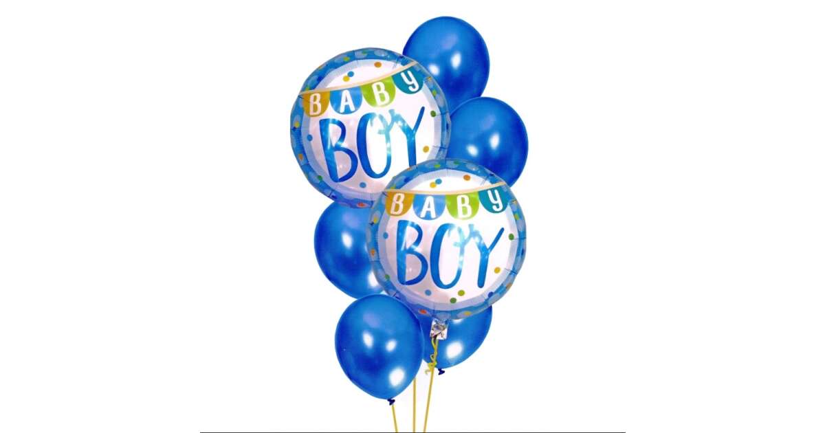 Ünnepelj stílusosan ezzel a 7 darabos kék lufikészlettel! Tökéletes választás fiúk születésnapjára, de babaváró bulira is. Két darab fólialufi "Baby Boy" felirattal és öt darab sima kék latex lufi garantálja az ünnepi hangulatot.