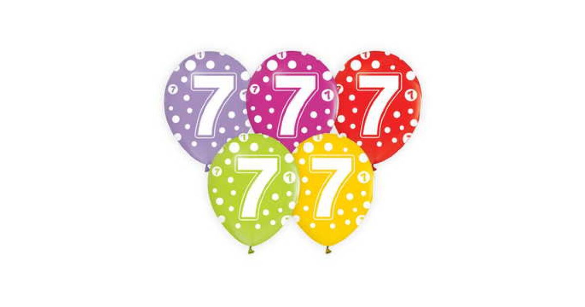 Szülinapi Lufik - 7-es szám - Pöttyös - 5 db - 30 cm