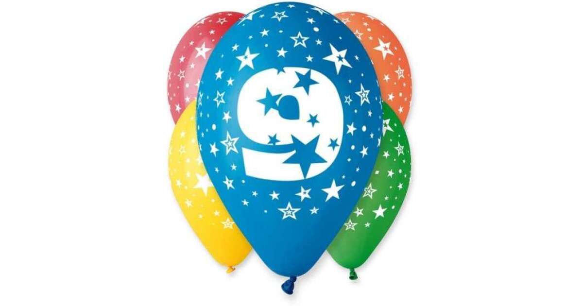 Ünnepeld a 9. születésnapot ezekkel a vidám, színes lufikkal! A csomag 5 db 30,5 cm-es (12 inch) latex lufit tartalmaz, mindegyiken a 9-es szám és csillagok mintája látható. Tökéletesek a születésnapi parti hangulat fokozására. 🎉