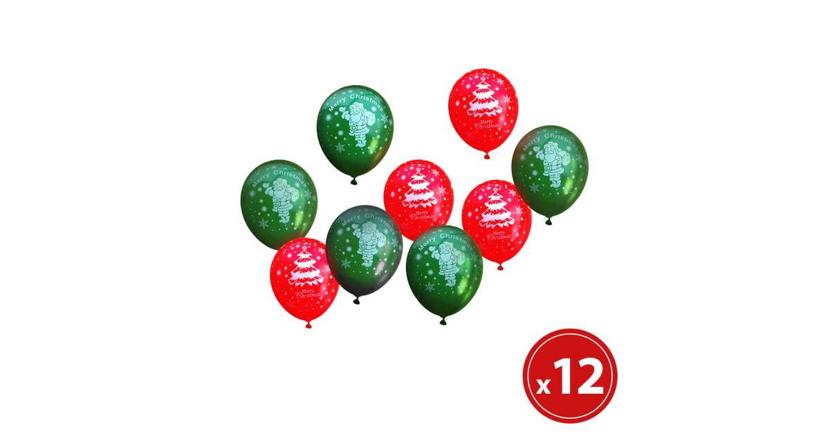 Ezt a terméket így is ismerheted: Lufi szett - piros-zöld, karácsonyi motívumokkal - 12 db / csomag