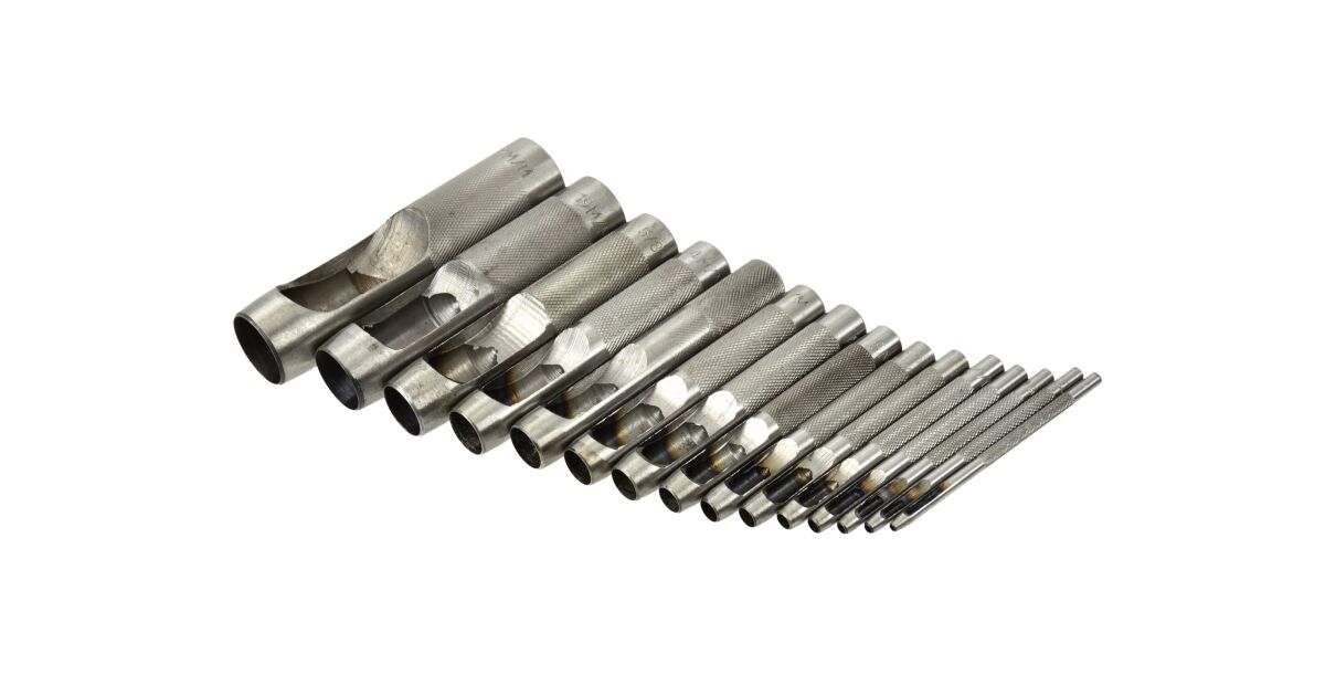 - Teljes készlet: Minden szükséges méretű lyukasztó megtalálható a készletben.