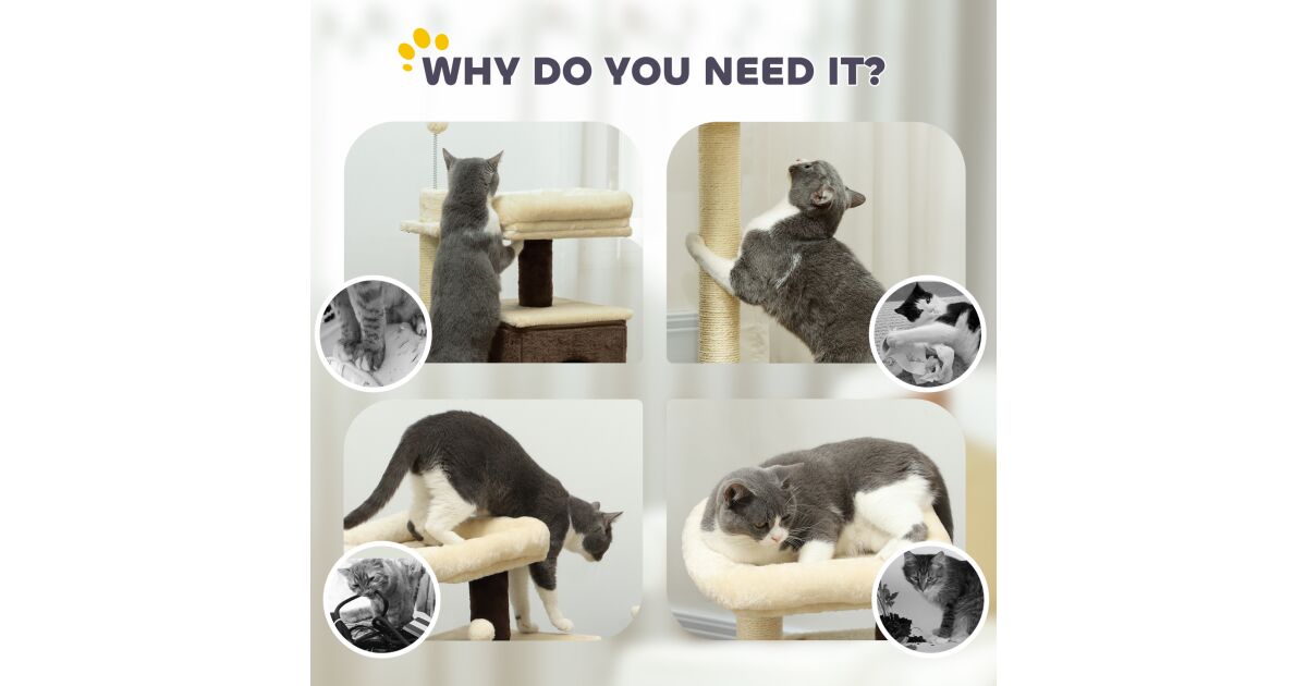 Ez a macskakaparófa nem csak egy szórakoztató játék, hanem egy stílusos kiegészítője is otthonodnak. Biztosítsd cicádnak a tökéletes helyet a játékra és a pihenésre ezzel a fantasztikus PawHut macskafával! 💖