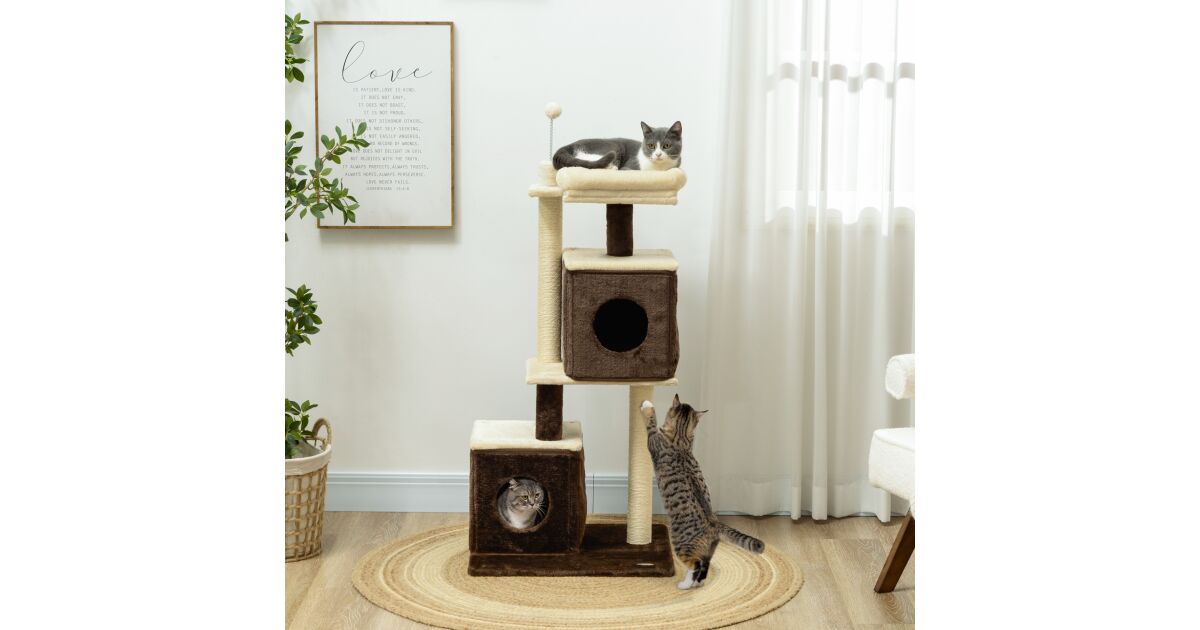 PawHut macskakaparófa: 2 házikóval, ággyal és játékokkal - A tökéletes játszótér cicádnak! 😻