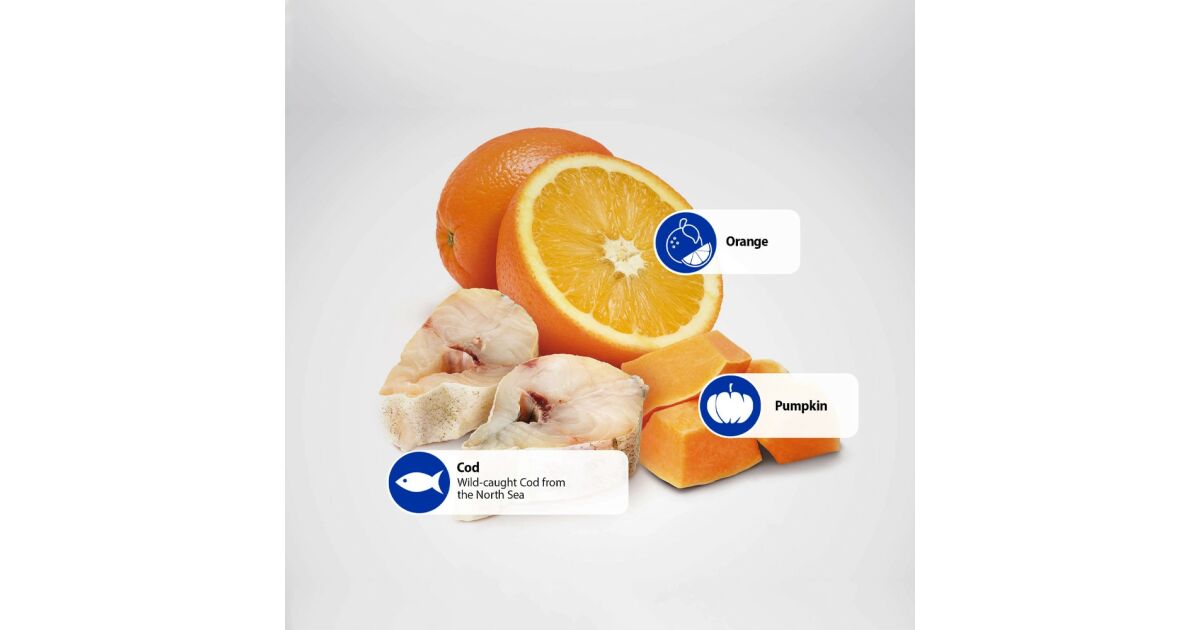 Összetevők: Hering, sütőtök, narancs, egyéb természetes összetevők. (A pontos összetevők listája a termék csomagolásán található.)