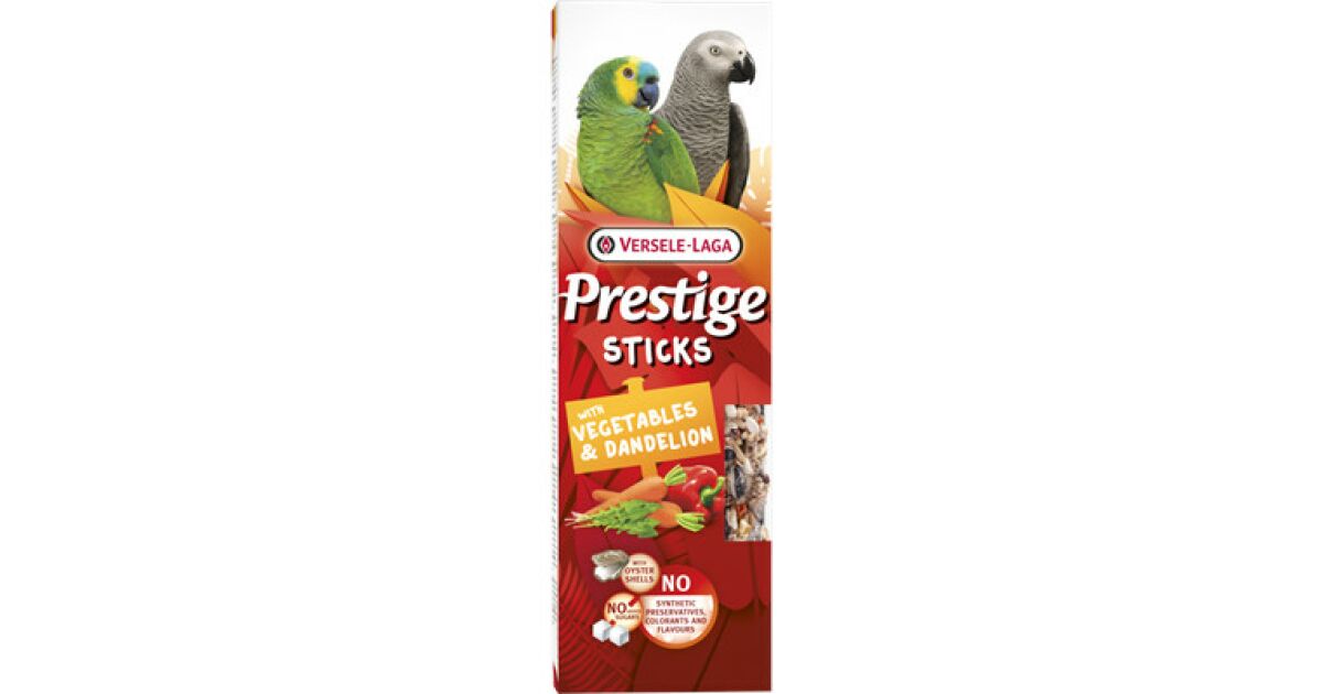 Versele Laga Prestige Sticks Dupla Rúd (zöldség, pitypang) | Kiegészítő eledel nagypapagájoknak – (2 db) 140 g leírása