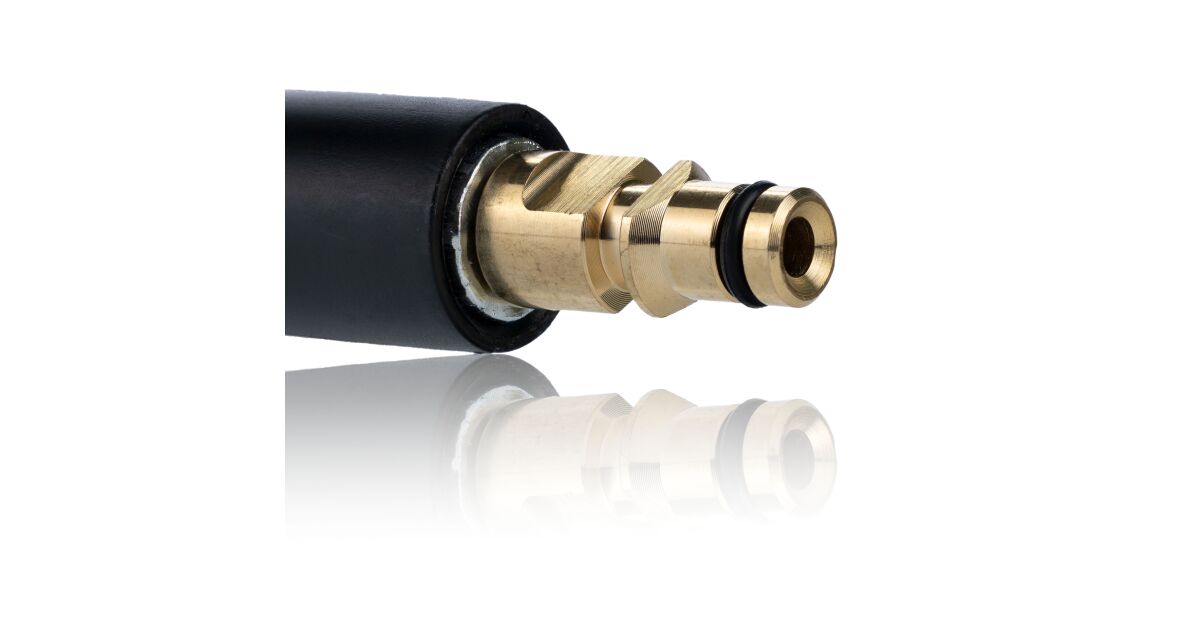 - Gyorscsatlakozó Rendszer: A hosszabbító gyors és kényelmes csatlakoztatását és leválasztását teszi lehetővé a nagynyomású tömlőről és a magasnyomású mosóról.