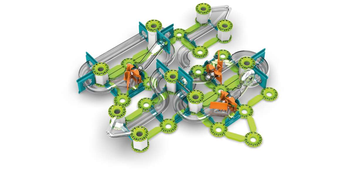 - 11 különböző pályát építhetsz a fémgolyók számára - az egyszerű modellektől a hurkokkal és ugrásokkal ellátott, fejlett elrendezésekig.