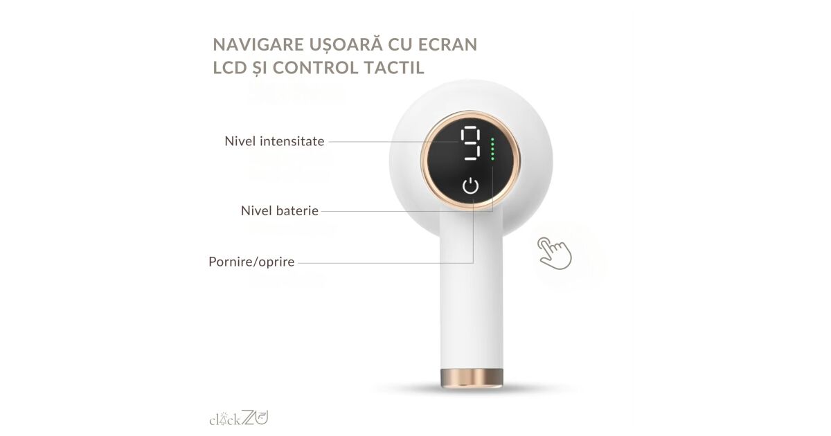 A modern interfész az LCD képernyővel és az érintésvezérléssel intuitív és gyors felhasználói élményt nyújt. Az akkumulátor töltöttségi szintjét vagy a kiválasztott intenzitást valós időben láthatod.