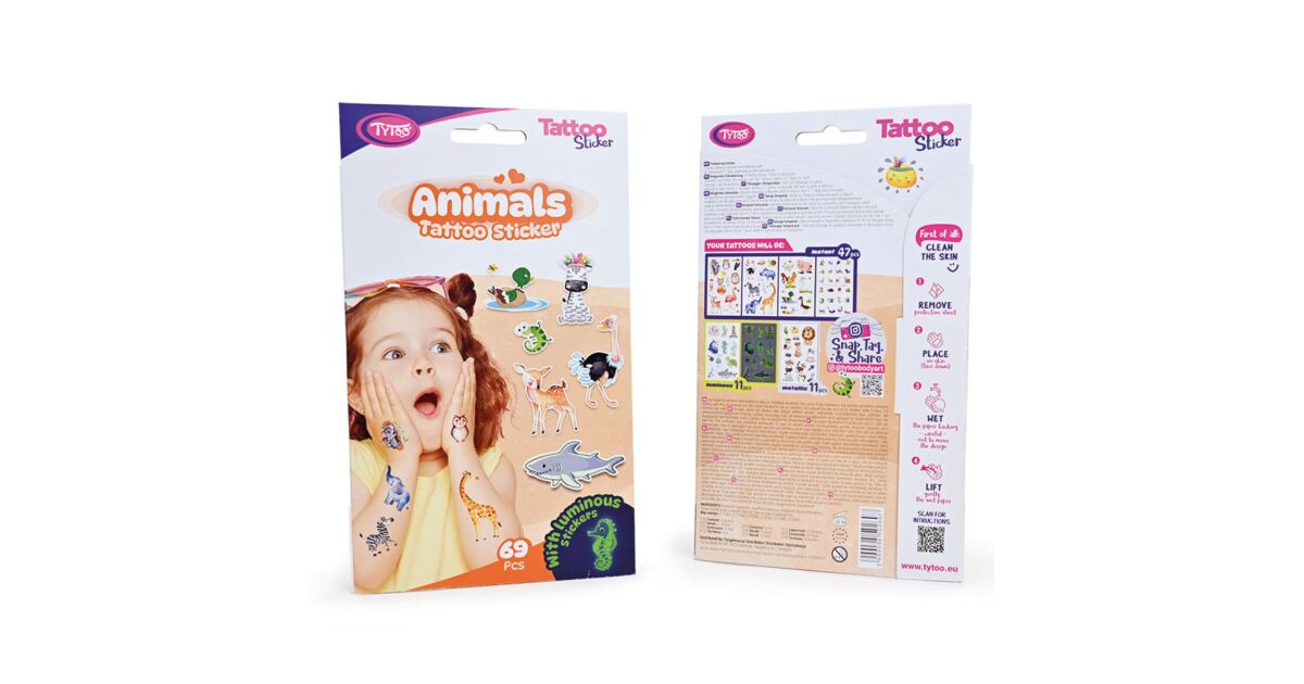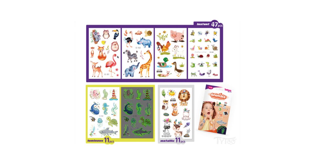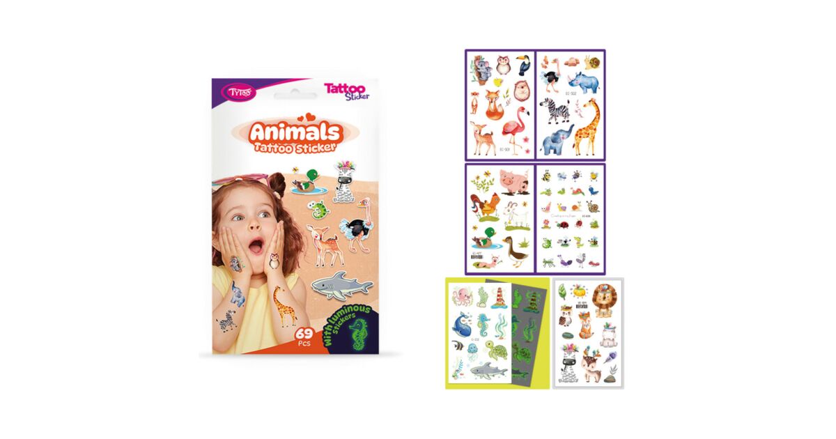 Ideiglenes tetováló matricák állatokkal: 69 db a gyerekek szórakozásáért 🐾
