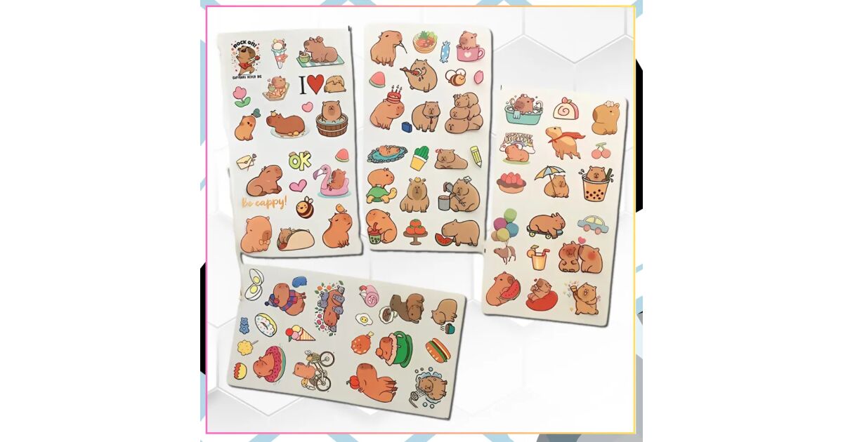 Aranyos Kapibara Matricák - 4 Lapos Szett Kreatív Projektekhez 🎨