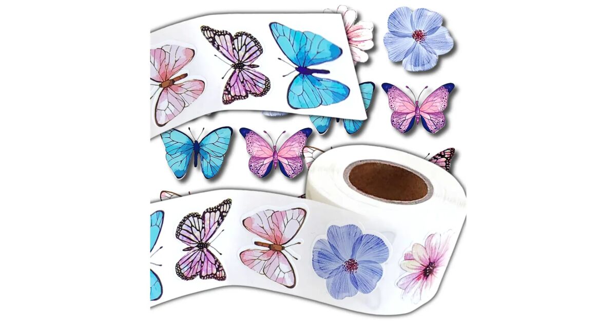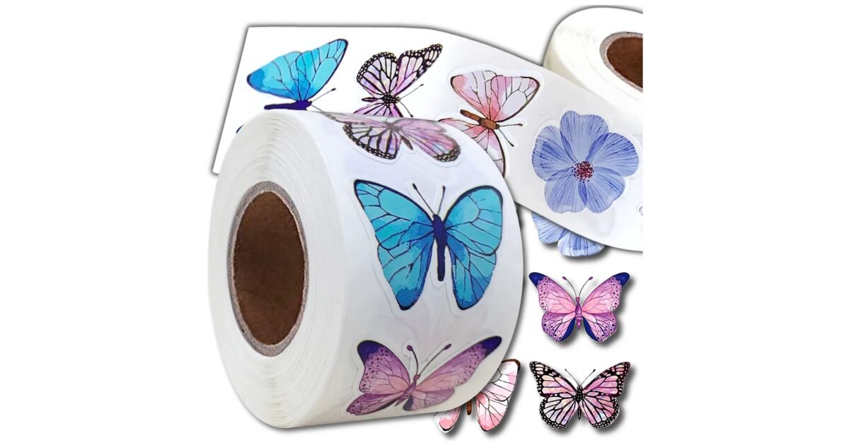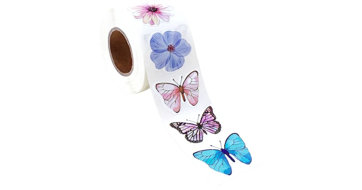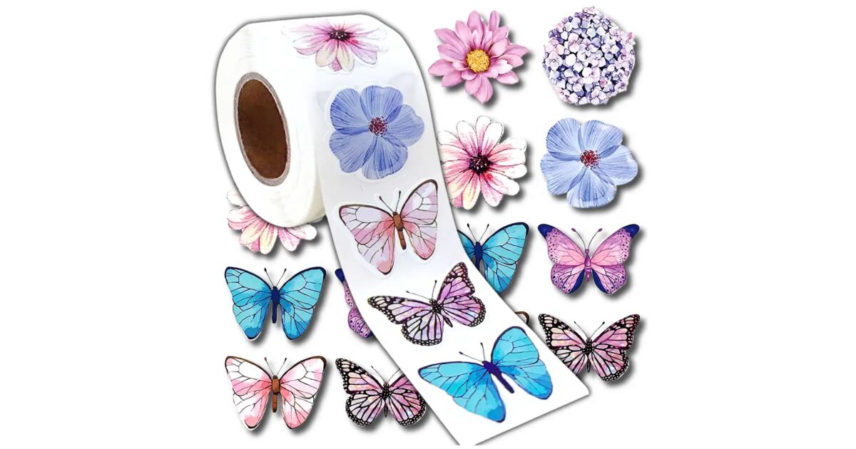 Színes pillangó és virág matricák tekercsen - 500 darabos készlet 🦋🌸
