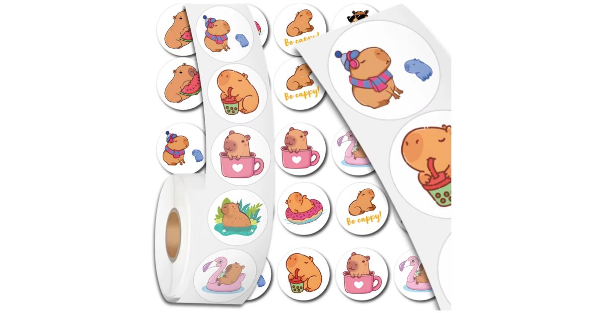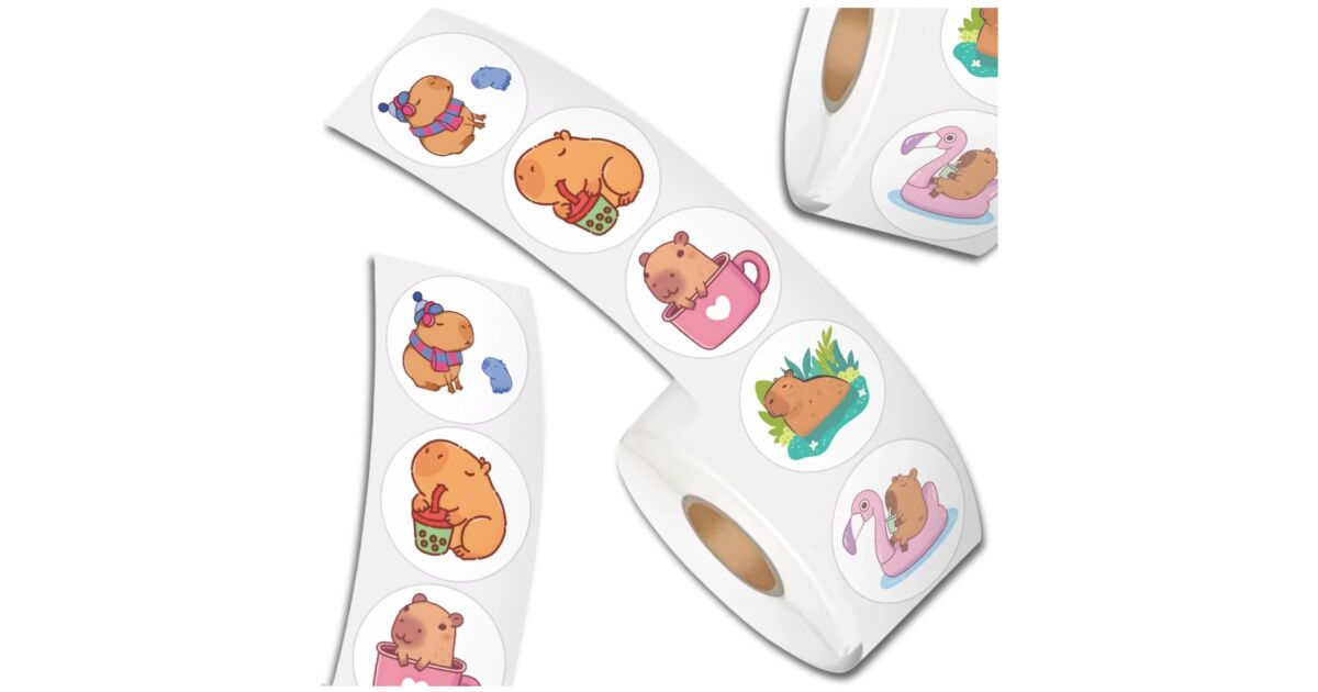Aranyos Kapibara Matricák – 500 darabos tekercs a kreatív szórakozáshoz! 🌟