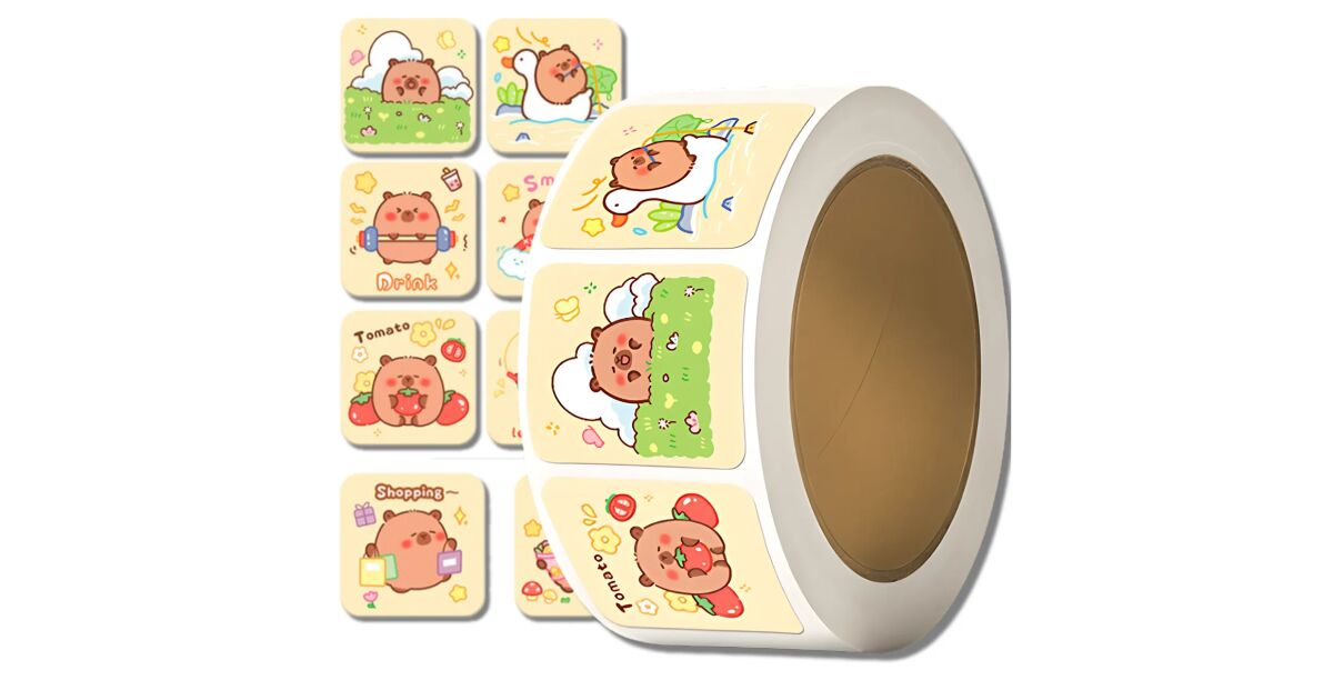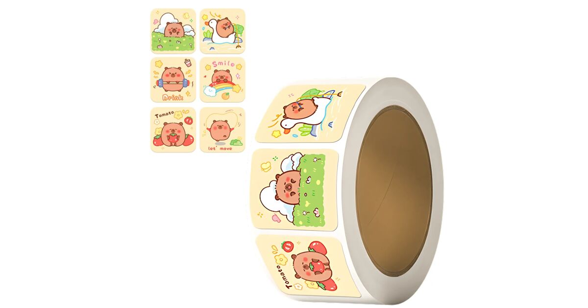 Ezt a terméket így is ismerheted: Színes capybara matricák 300 db-os tekercsen, kreatív barkácsprojekt gyerekeknek