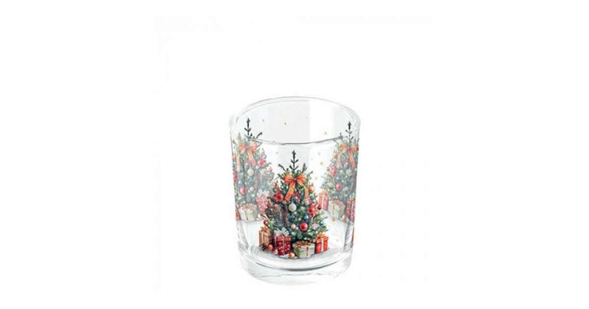AMB.37319175 Decorated Christmas Tree üveg mécsestartó 5,5x6cm