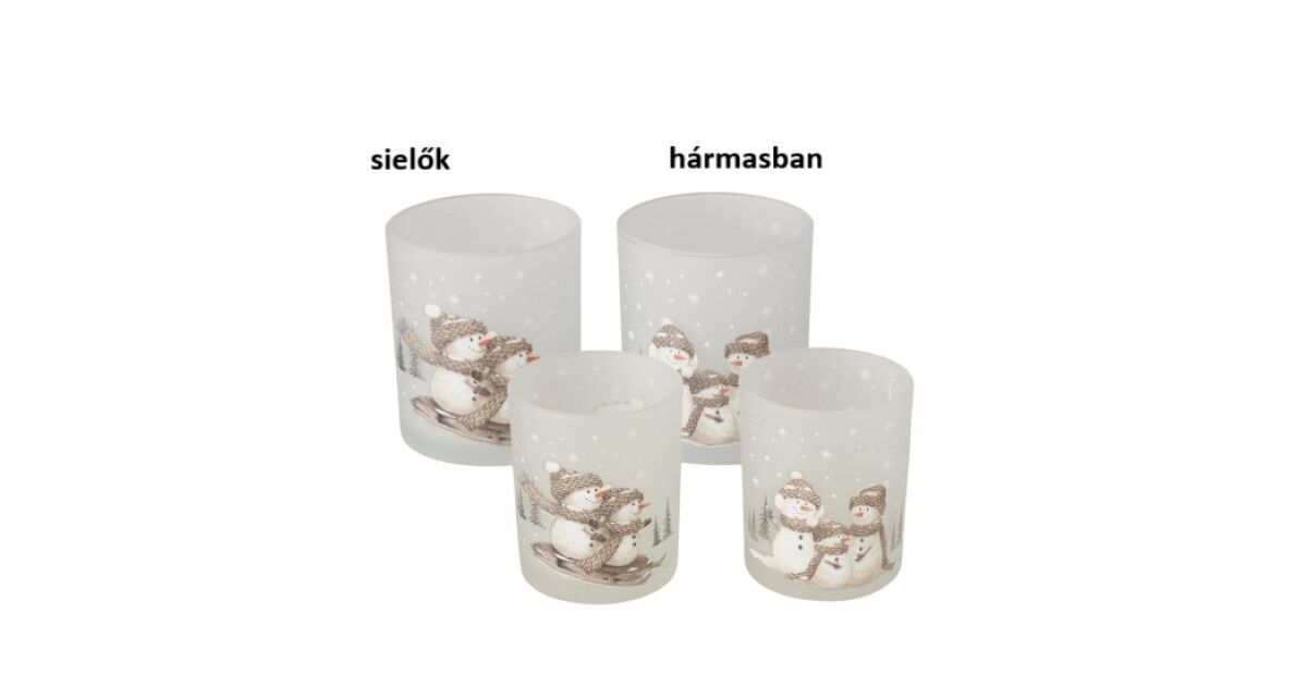 B.G.2061003 Üveg mécsestartó szett 2 db-os, 7x8,4/9x10,3cm, hóemberes, Frosty vélemények