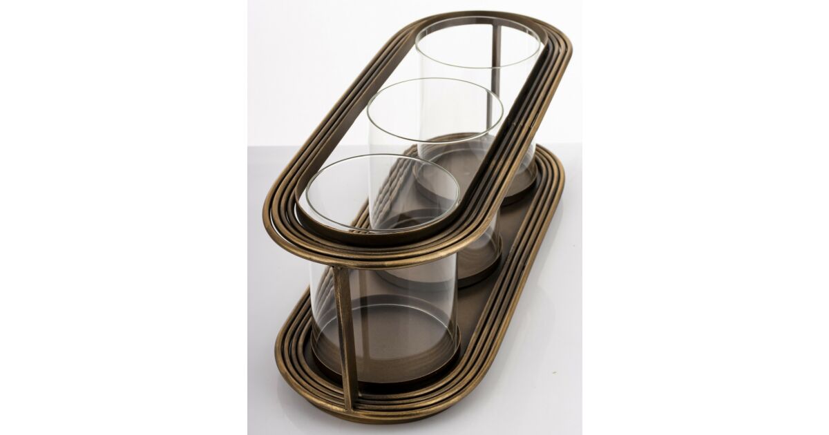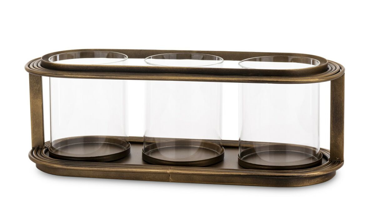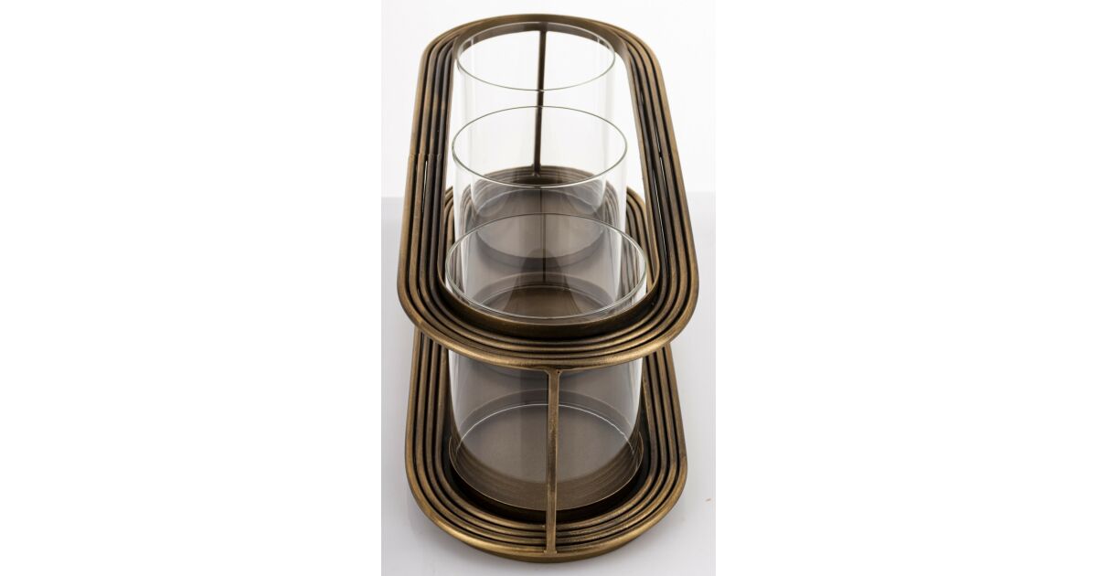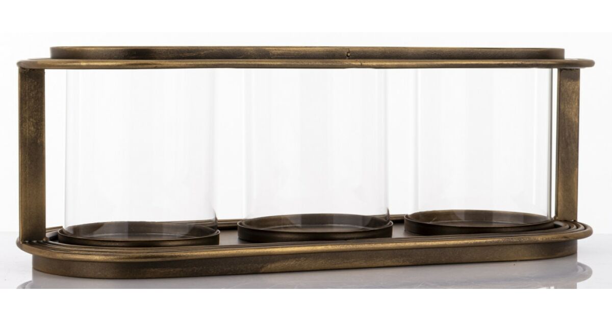 Ezt a terméket így is ismerheted: Modern ovális bronzos fém mécsestartó üvegbúrával 3db mécses számára 17x49x19cm