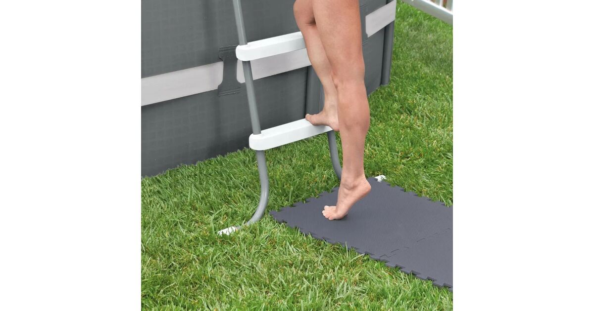 Ez a 8 darabos Intex puzzle medence alátét tökéletes megoldás a kerti medencéd védelmére és a kényelmes belépés biztosítására. A szivacsos szőnyegből álló alátét védi a medencéd alját a talajtól, meghosszabbítva ezzel az élettartamát. Ugyanakkor puha és kényelmes felületet biztosít a belépéshez, így a vízbe lépés sokkal kellemesebb lesz. A felhasználók is megerősítik a puhaságát és a kellemes felületet.
