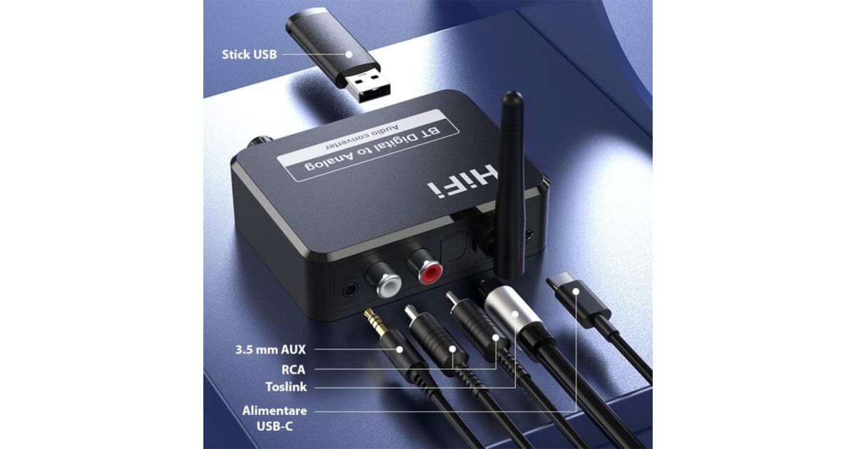 Alakítsd át audiorendszeredet a Techstar® OT13 segítségével, egy sokoldalú digitális-analóg audio konverterrel, amely kiváló minőségű hangzást hoz otthonodba. Élvezd a Bluetooth 5.1 kapcsolatot, a széleskörű kompatibilitást és a magával ragadó hangélményt.